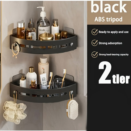 Easy-Install Triangle Corner Shelf - Wall-Mounted, No-Drill Plastic Storage Rack for Bathroom & Toilet Organization